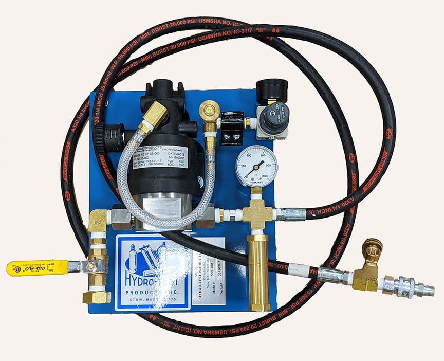 Designed for performing a “proof test” on tubing, piping, sprinkler systems, fire extinguisher cylinders, boilers, etc…